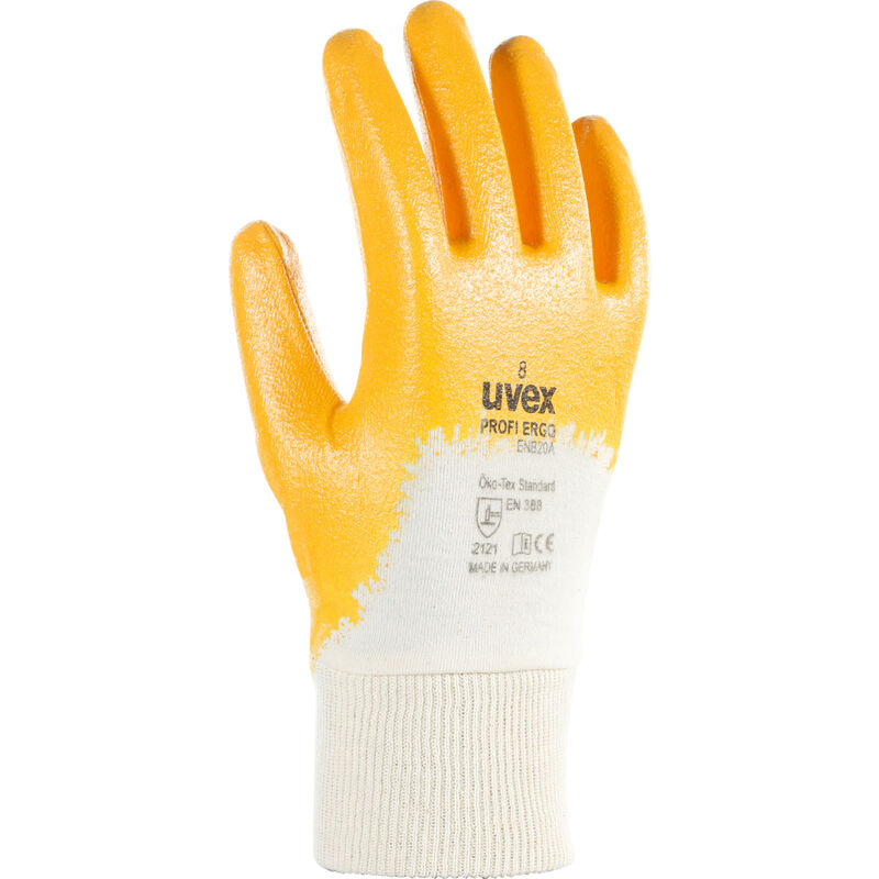 Uvex profi ergo ENB20A. Guanto universale in cotone Interlock con rivestimento 3/4 in nitrile-caucciù per ambienti umidi, oleosi o grassi. Norma: EN 388;