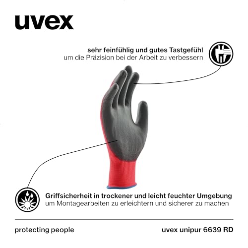 Uvex Unipur 6639 - Guanti protettivi, 10 paia di guanti da lavoro e da uomo, colore nero/rosso, taglia 10/XL