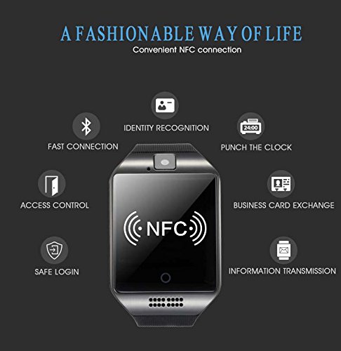 Uwatch Smartwatch Q18, fitness tracker Bluetooth da polso con batteria da 500 mAh, pedometro, monitoraggio del sonno e notifiche, include fotocamera e supporto per scheda SIM, compatibile con cellulari Android (es. Samsung), iPhone e altri dispositivi iOS