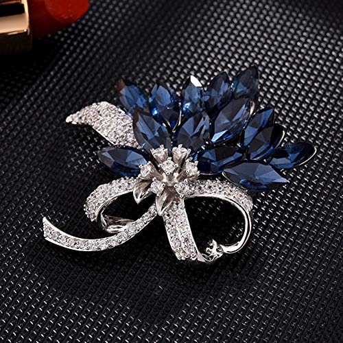 G&UWEI Spille Pin Flower Design Spilla Creato Regalo di Cristallo Spilla Donne Blu Zaffiro Fiore Spilla Pin Festa di Nozze di San Valentino