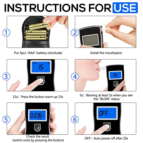 【Sensore veloce e ad alta precisione】: Il tester per alcol è dotato di un design professionale delle vie aeree e di un sensore a semiconduttore ad alta precisione. Visualizza con precisione il livello di alcol nel sangue rapidamente. Quindi puoi decidere se guidare dopo aver bevuto.