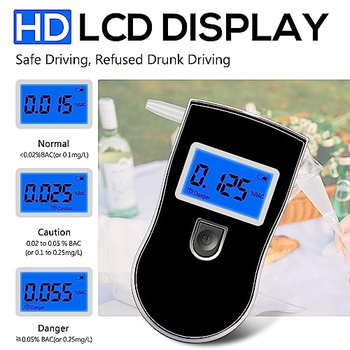 Uwelliky Etilometro, Portatile Professionale Digitale Alcoltest con Schermo LCD Display e Sensore Semiconduttore, Incluir 20 Boccagli, Misurazione Rapida e Accurata, Uso Personale e Professionale