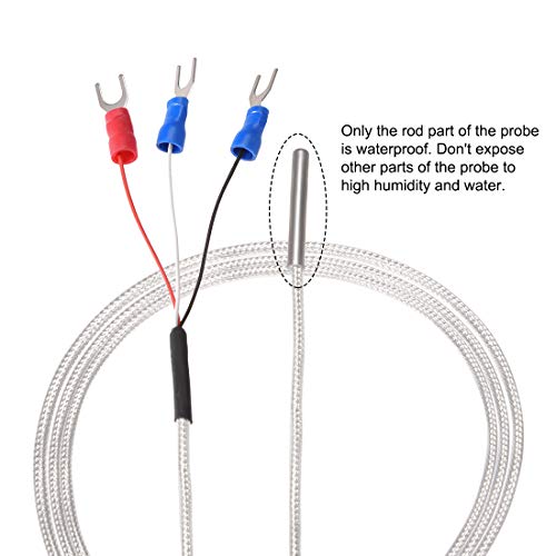 Uxcell PT100 RTD Sensore Temperatura Sonda 3 Fili Termocoppia Cavo Acciaio Inossidabile 100cm(3.3ft),B Grade