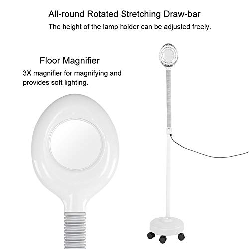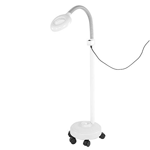 Uxsiya 5X Lente d'Ingrandimento Lampada da Terra Lampada a Luce Fredda a LED con Ruote per innesto di Tatuaggi Lettura Ciglia(EU Plug)