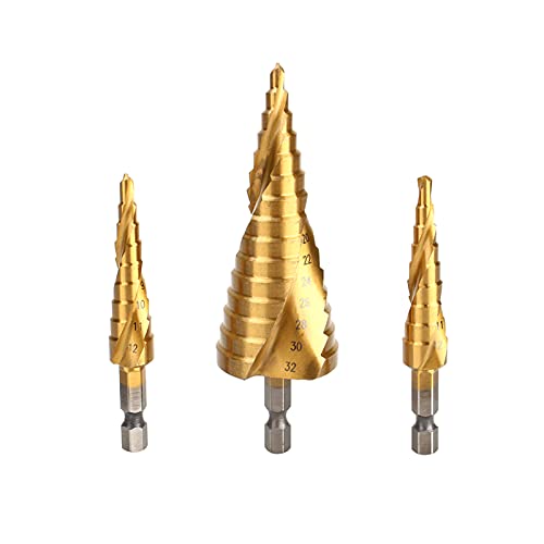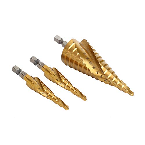 Uxsiya Punta da Trapano a Gradino, Punta da Trapano a Cono Set di Punte con Rivestimento in Titanio Compatto Punta conica a Spirale in Acciaio HSS per Foratura