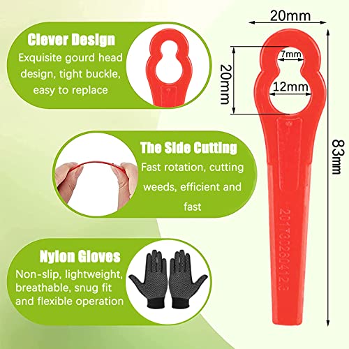 UYDF 100Pezzi Lama in Plastica per Tosaerba Lame di Ricambio per Decespugliatori Giardino Accessori per Rifilare Il Prato Erba da Taglio Adatto per FRT18A FRT18A1 Art 46155 FRT20A1+1 Paio Nylon Guanti