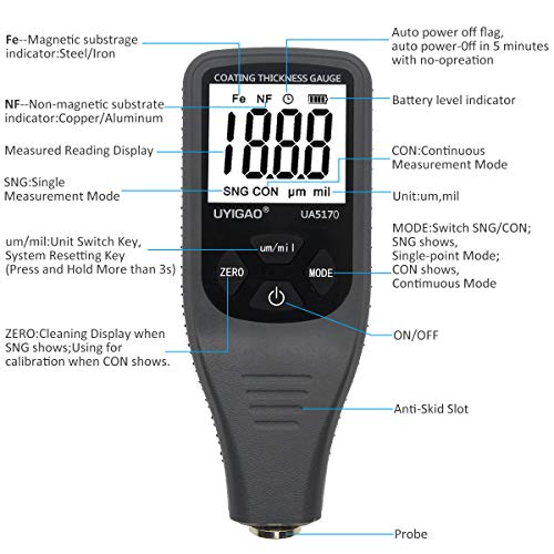Uyigao (UA5170) Rivestimento spessore tester digitale manometro strumento portatile ferro alluminio base metallo auto