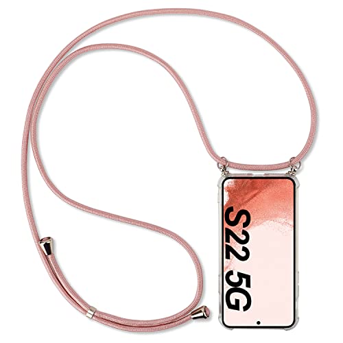 UYMO Cover con Cordino per Samsung Galaxy S22 5G,Custodia con Laccio Collana Tracolla Regolabile catena Case,Ultra Morbido Silicone Trasparente TPU Bumper Case Antiurto AntiGraffi, Oro Rosa