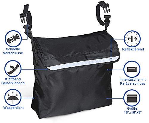 Uyoyous Borsa multifunzionale per sedia a rotelle, borsa portaoggetti, accessori per sedia a rotelle, per la mobilità, sedia a rotelle, ad alta capacità, impermeabile (nero)