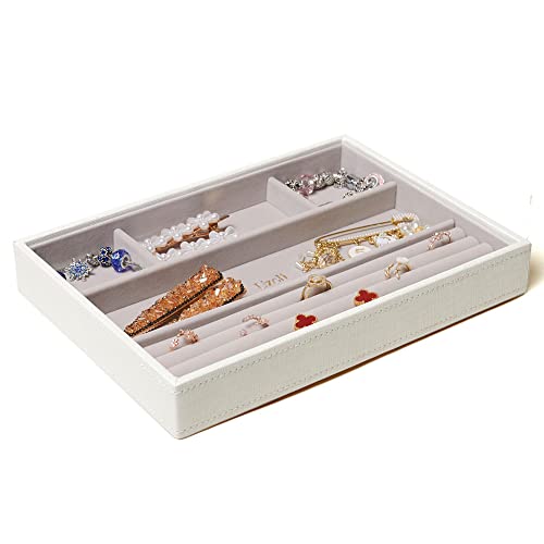 Uzoli vassoio gioielli velluto per cassetti scatola portagioie impilabili espositore organizer organizzatore porta gioielli anelli orecchini regalo donna - vassoio multifunzione bianco