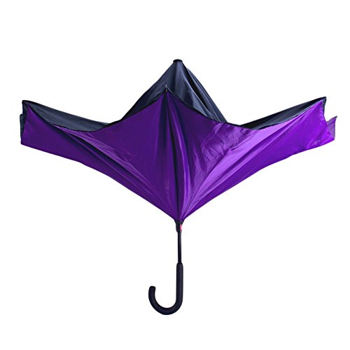 V-BLUE Reverse-Ombrello Inside-Out Ombrelli impermeabile antivento raddoppiato Reversion Ombrello Viola inverso