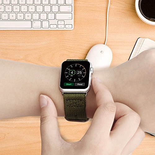 V-MORO Cinturino Apple Watch 38mm, Morbido Braccialetto Regolabile in Nylon Connettore Band per Apple Watch 38mm di Series 1 2015 & Series 2 2016( Per Apple Watch 38mm,verde)