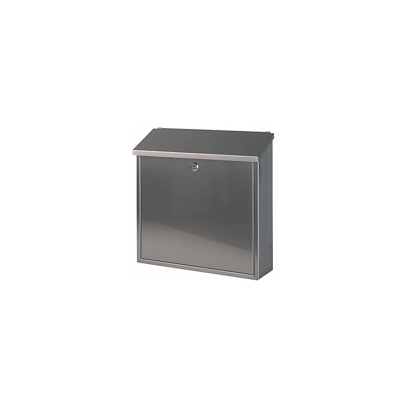 Cassetta postale, con sportello a spiovente ribaltabile, alt. x largh. x prof. 370 x 370 x 115 mm, in acciaio inox. Fornitura = montato. Altezza totale = 370 mm. Larghezza totale = 370 mm. Profondità totale = 115 mm. Materiale = acciaio inox. Colore = acciaio inox. Peso = 2.28 kg. Serratura = serratura a cilindro con 2 chiavi. Numero fessure = 1 pz. Larghezza apertura d'inserimento = 358 mm. Altezza apertura d'inserimento = 40 mm. Tipo di prodotto = cassette postali. Disponibili in diverse versioni. Con sportello a spiovente ribaltabile, fessura superiore (larghezza x altezza 358 x 40 mm) Si prega di verificare le norme postali vigenti nel proprio Paese, in particolare nei Paesi Bassi e in Svizzera (norma PTT), dove talvolta le cassette qui illustrate sono omologate solo per uso interno.