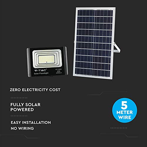 V-TAC Bianco LED da Esterno-Faro con Pannello Solare da 35W-Flusso Luminoso da 2450lm-Luce Freddo 100 W