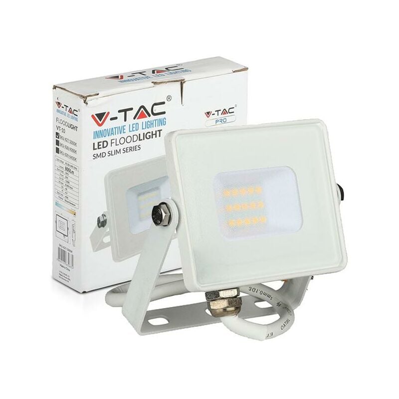 Faro LED V-Tac PRO VT-10 con potenza di 10W adatto all' uso esterno (IP65). Flusso luminoso 800lm. 3 temperature di colore: Luce Calda 3000K SKU 427, Naturale 4000K SKU 428 e Fredda 6400K SKU 429. Faro LED V-Tac PRO VT-10 con potenza di 10W. Corpo ultra sottile in alluminio pressofuso di colore bianco con staffa e cavo di colore bianco e copertura in vetro satinata. Proiettore con tecnologia LED SMD adatto all'uso esterno, grado di protezione IP65. Fascio luminoso di 100°, flusso luminoso di 800 lm e rapporto di 80 lm/W. Il design slim, lo rende più leggero di un normale faro e più semplice da installare, oltre ad avere un'estetica più accattivante. I prodotti V-Tac PRO utilizzano chip LED Samsung di nuova generazione, garantiscono una durata di 30000 ore, hanno una garanzia di 5 ANNI, un'affidabilità superiore alla media e una più elevata efficienza energetica. 3 temperature di colore: Luce Calda 3000K SKU 427, Naturale 4000K SKU 428 e Fredda 6400K SKU 429. Dimensioni 115x108x26.