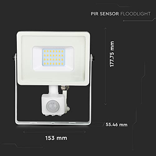 V-TAC Faro LED Chip Samsung 50W con Sensore di Movimento e Crepuscolare e Interruttore Manuale di Bloccaggio Colore Nero 4000K IP65