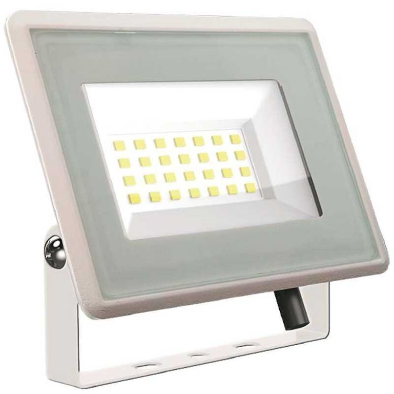 Faro LED SLIM Bianco 20WPremium Series 100 1600LM esterno IP65 SMD Mod.VT-4922W Il faro a Led dotato di filo senza spina, per collegamento diretto in scatola di derivazione.La struttura in alluminio sottile SLIM, dal colore bianco, rende questo faro adattabile in ogni situazione.Ottimo in sistemi di videosorveglianza e sicurezza, dato il basso assorbimento pu essere lasciato sempre acceso.Inoltre resistente all'acqua (IP65) e quindi pu essere installato anche in spazi esterni come: giardini, cortili, ville ecc.. Il faro completo di staffa per un facile montaggio a muro. Caratteristiche Chip LED: High Power SMD Alimentazione: 230V (AC:100-240V,50/60Hz) Tecnologia dei Led: SMD Potenza: 20W Potenza (equivalente ad alogena): ~ 100W Flusso luminoso: 1600Lm Apertura fascio luminoso: 100 Grado di protezione IP: Waterproof IP65 Indice di resa cromatica (IRC): > 70 Dimmerabilit: NO Classe energetica: A+ Colore corpo: Bianco Materiale:Alluminio ad alta resistenza, Vetro ad alta resistenza.