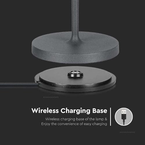 V-TAC Lampada da Tavolo senza Fili LED Dimmerabile con Comandi Touch - Lampada Grigia Wireless per Uso Interno ed Esterno IP54 da Casa o Ristorante - Batteria 4400 mAh - Luce 3000K Bianca Calda - 2W
