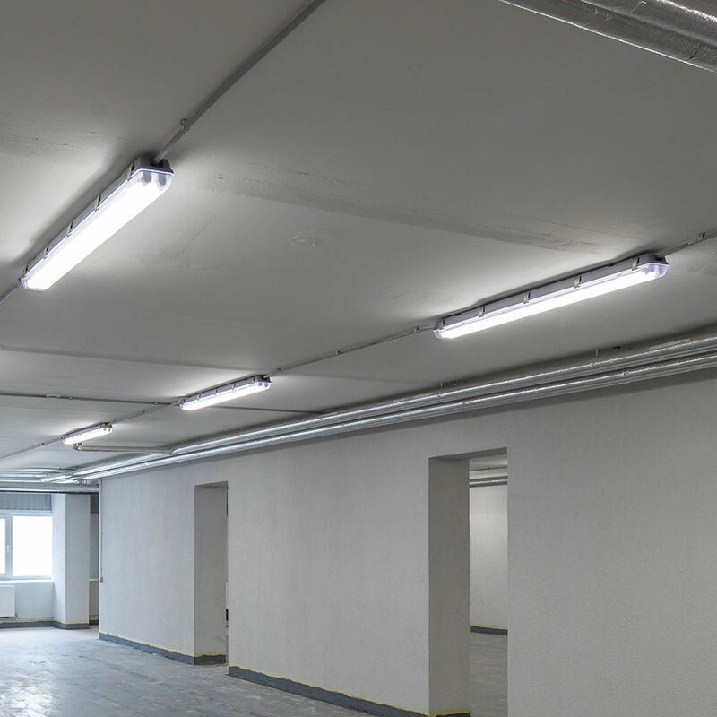 Descrizione Plafoniera a LED per l'utilizzo in capannoni industriali o magazzini, officine o garage. Grazie all'elevata classe di protezione IP65, questa lampada è ideale come lampada per ambienti umidi e bagnati. Con ben 5760 lumen, ogni area, che si tratti di un posto di lavoro, di un seminterrato o di un garage, è illuminata in modo ottimale! La sorgente luminosa a LED è installata in modo permanente nella lampada. Nella consegna sono incluse quattro luci! Lampada dettagli • Tipo di luce: luce vasca • Materiale: plastica (ABS) • Paralume: Policarbonato • Possibilità di collegamento in serie con un massimo di 10 luci • Grado di protezione: IP65 • Lunghezza x larghezza x altezza in cm: 150 x 6,4 x 6 • Sorgente luminosa: LED • Lampadine incluse: sì (installate in modo permanente) • Potenza della lampada: 48 watt • Flusso luminoso: 5760 lumen • Colore della luce: bianco freddo • Alimentazione: 230V, 50Hz Dettagli lampadine • Tipo di lampadina: LED • Flusso luminoso: 5760 lm (lumen)