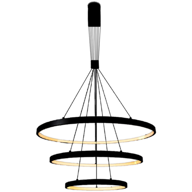 Lampadario LED a Sospensione con 3 Cerchi 46W in Metallo Colore Nero Dimmerabile 40*60*80*150cm 3000K