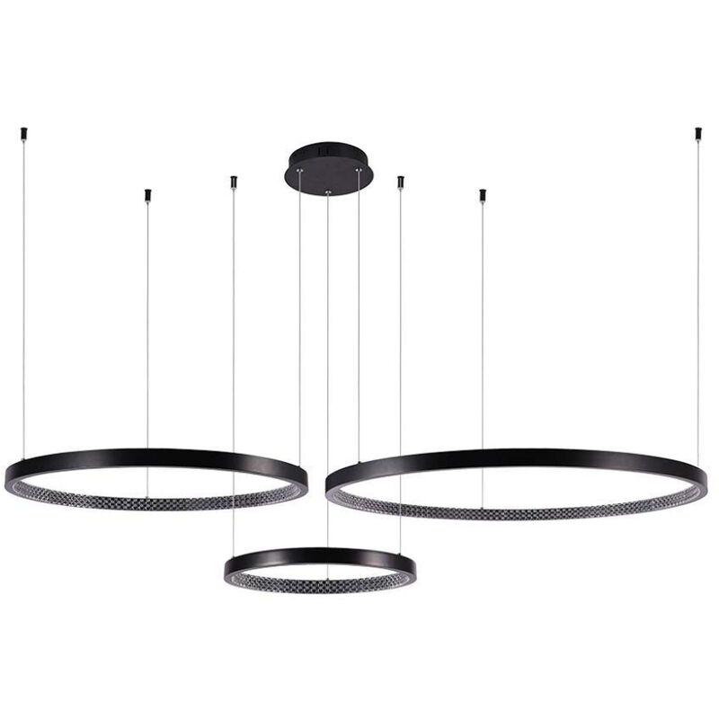Lampadario LED a Sospensione con 3 Cerchi 57W in Metallo Colore Nero 151*91*108cm 4000K