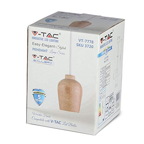 V-TAC Lampadario Sospensione, Legno, 20 x 14 cm