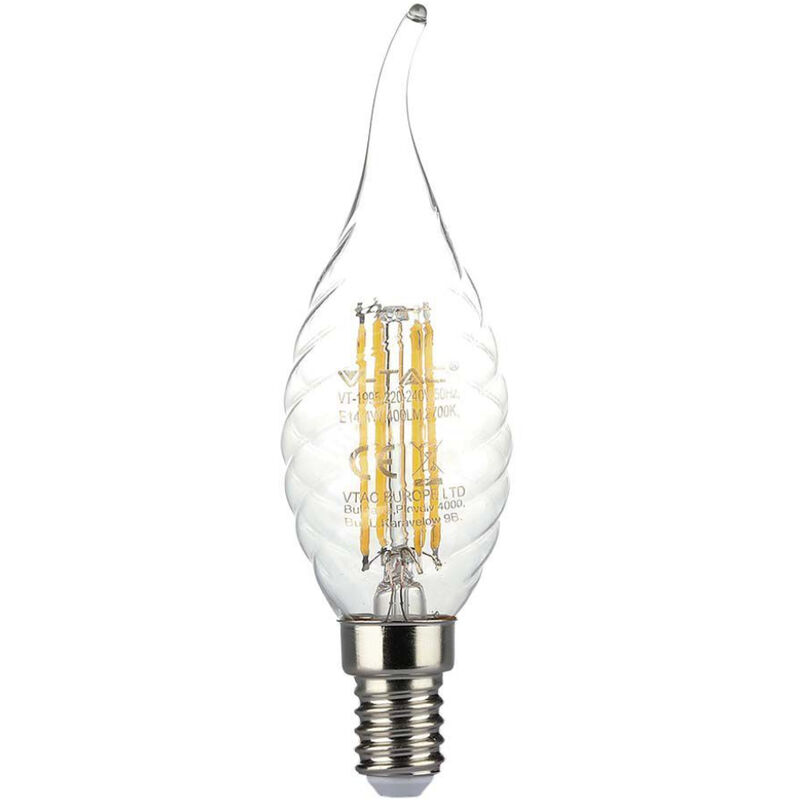 Lampadina LED E14 4W 100LM/W Candela a Fiamma Tortiglione Filamento 3000K