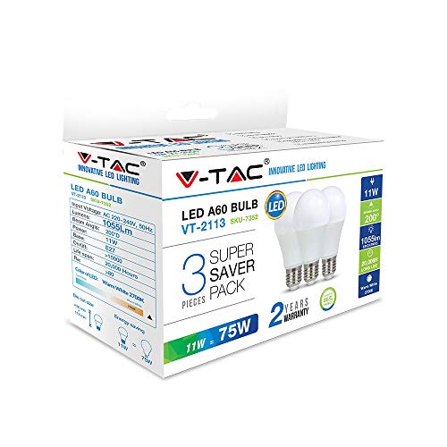 V-TAC Box da 3 Lampadine LED a Goccia 11W, E27 1055 Lm, Bianco Caldo