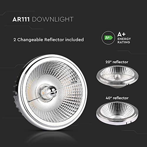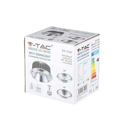 V-TAC LEDLUX AR1121 Lampada Faretto Led AR111 20W AC 220V Doppio Riflettori Intercambiabile 20° e 40° (Neutro 4000K)