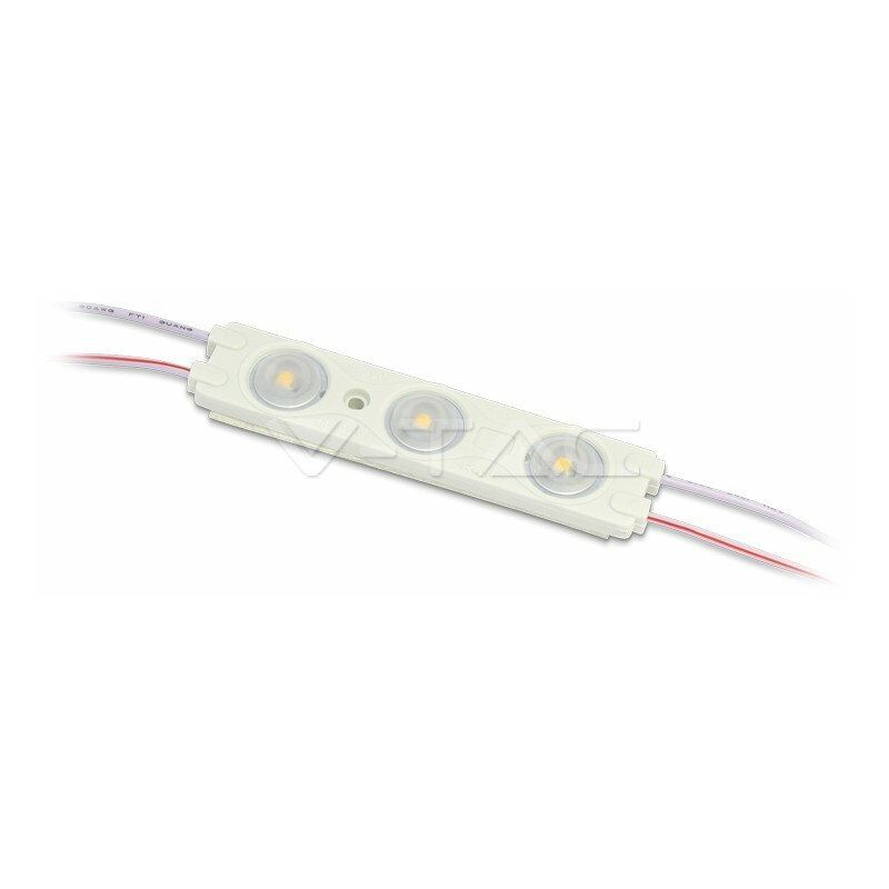 Modulo LED V-Tac VT-28356 monocolore composto da 3 LED SMD 2835 con potenza totale di 1,5W e flusso luminoso fino a 150 lm. Modulo adatto ad essere installato allinterno di scatolari ad illuminazione diretta e non, utilizzabile anche nellilluminazione architettonica di interni ed esterni, grazie al grado di protezione IP67 e al corpo in PVC. Date le ridotte dimensioni, è possibile creare insegne pubblicitarie o di segnalazione con qualsiasi misura e spessore. Il fascio luminoso di 120° consente una distribuzione omogenea della luce, mentre il biadesivo applicato sul retro rende il modulo di facile installazione. Il collegamento tra i moduli effettuato con cavi, permette di alimentarli da un unico punto. Per il funzionamento, necessita di alimentatore 12V proporzionato al reale assorbimento della potenza totale dei moduli che si vuole installare. Questo modulo permette infiniti tipi di utilizzo sia in ambito domestico che industriale. Questo modulo è disponibile con 5 differenti