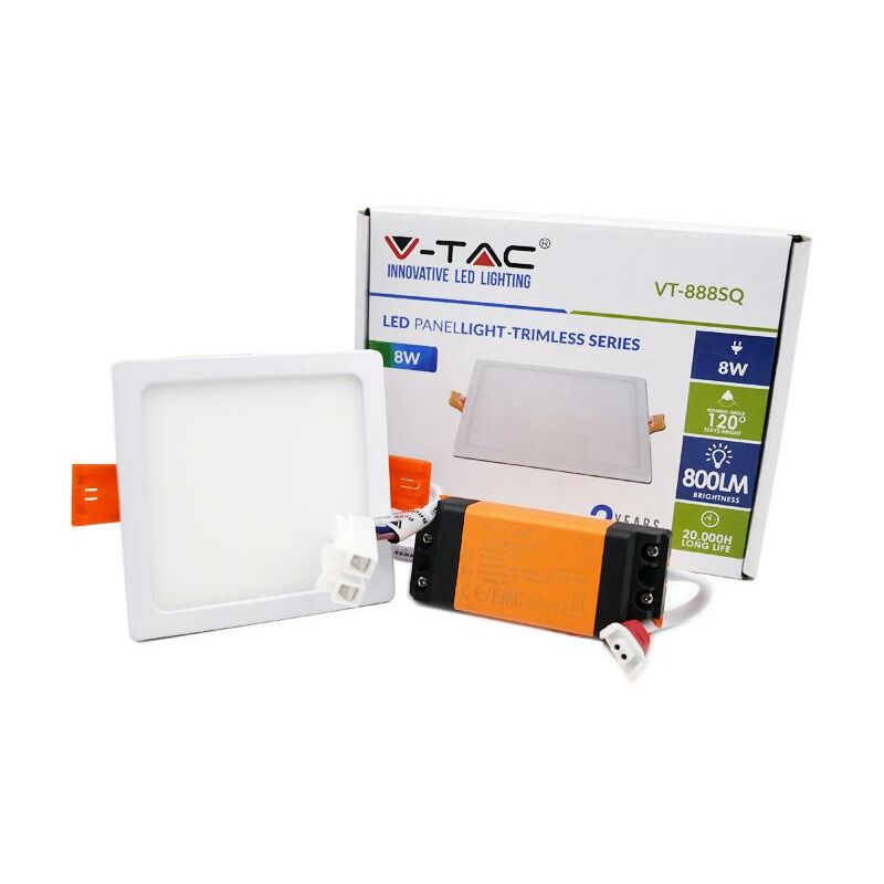 8W Pannello LED Quadrato 4500K SKU: 4944: VT: VT-888 Caratteristiche del prodotto .Ultra sottile, moderna e dal Design elegante .Maggiore velocit di trasmissione della luce .Copertura esterna solida, difficilmente danneggiabile .Senza infrarossi, non attira le mosche .Facile da installare .Priva di Piombo o mercurio .Eco-compatibile .Disponibili modelli dimmerabili Installazione .Illuminazione d Ufficio .Sale per conferenze .Ospedali .Hotel .Centri commerciali .Showroom, Hall ecc. Specifiche tecniche: Informazione generale = ~:Tipo LED=SMD~:Vita media=>20 000h~: Dati elettrici = ~:Potenza=8W~:Potenza EQV. a incandescenza=40W~:Tensione=AC: 220-240V~:Frequenza =50/60Hz~:Fattore di potenza=>0.9~: Dati tecnici Luce = ~:Colore della luce =Bianco naturale~:Temperatura di colore=4500K~:Flusso luminoso =560 lm~:Indice di resa cromatica Ra=>80~:Fascio Luminoso=110 °~: Dettagli corpo = ~:Materiale =Alluminio~:Forma=Quadrato~:Colore=Bianco~: Funzionalità