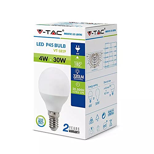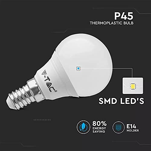 V-TAC, set da 10 pezzi, lampadine a LED, E14, forma a pera, P45, angolo di diffusione 180 °, Weiss 6400k, E14, 4.00W, 230.00V