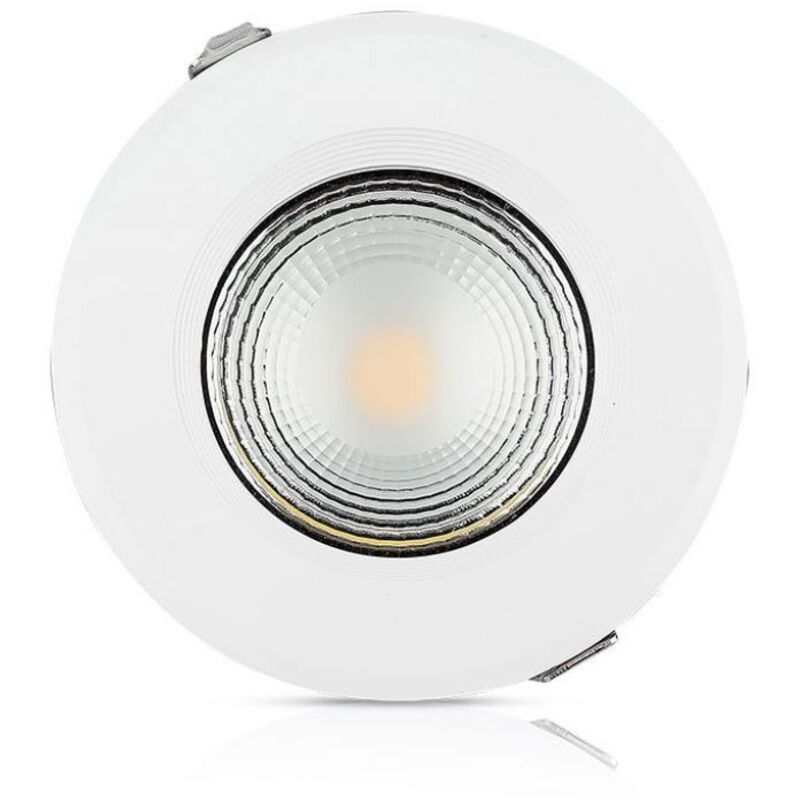 30W Spot LED COB Rotondo A++ 120Lm/W 3000K SKU: 1276: VT: VT-26301 Caratteristiche del prodotto Design elegante Nessuna emissione di raggi UV Nessun lampeggio intermittente Migliore Qualit dei componenti LED rispetto a marche come CREE & SAMSUNG Driver di ottima qualit con alto risparmio energetico ed elevata Resa Cromatica Semplice installazione Varie rifiniture con resistente corpo in alluminio pressofuso Minima Manutenzione Installazione Aree Commerciali e Residenziali Hotel, Bar Showrooms etc. Specifiche tecniche Informazione generale Tipo LED COB Vita media 20000 h Dati elettrici Potenza 30W Potenza EQV. a incandescenza 270W Tensione AC: 100-277V Frequenza 50/60Hz Fattore di potenza > 0.9 Dati tecnici Luce Colore della luce Bianco caldo Temperatura di colore 3000K Flusso luminoso 3600 lm Fascio Luminoso 120° Dettagli corpo Materiale PKW Forma Rotondo Colore Bianco Funzionalità Dimmerabile No Rotazione No Tempo innesco 100% 0.001 secondo Stabilità del colore