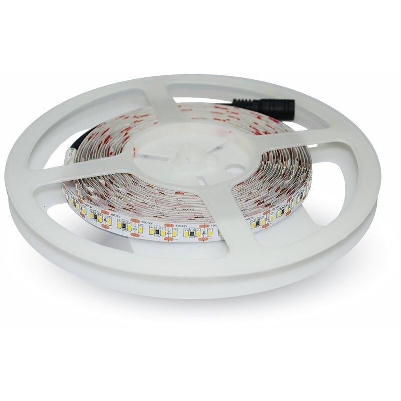 Striscia LED V-Tac con LED 3528. La striscia ha una potenza di 7,2W/m e misura 5 metri. Composta da 120 LED per metro. Il fascio luminoso è di 120° mentre il flusso luminoso è di 5 lm per LED. Tramite il connettore Jack 2.1 può essere facilmente connessa ad un alimentatore plug&play. Divisibile e dotata di striscia adesiva sul retro. Questo modello di striscia è disponibile con 3 diverse temperature colore: Luce Bianca Calda 2700K (SKU 2225), Bianca Naturale 4000K (SKU 2042) e Bianca Fredda 6000K (SKU 2002). Potenza 7.2W Flusso luminoso 600 lm Tensione alimentazione DC 12 V Angolo di Diffusione 120° Colore Bianco Materiale Silicio Grado di Protezione IP20 Dimmerabile No Durata 20000 ore Tipo di chip LED SMD3528 Efficienza energetica 80 lm/W Packaging Volume 0.000546 m3 Peso 0.024 kg Altezza confezione 260 mm Larghezza confezione 10 mm Profondità confezione 210 mm Quantità nella confezione 400 mt Quantità per pallet 8000 mt