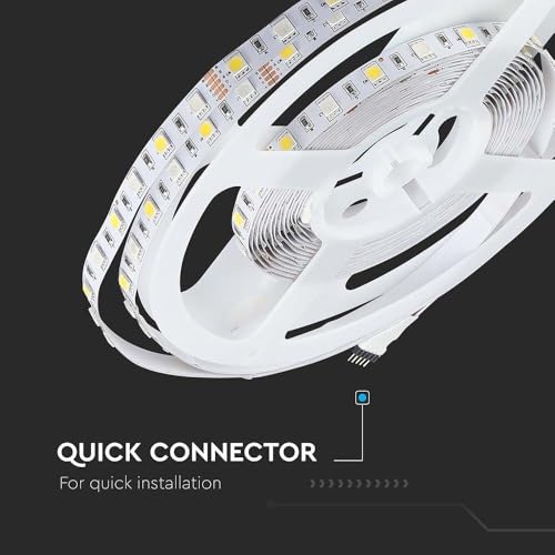 V-TAC Striscia Led flessibile e adesiva da 8W per metro, 300 LED distribuiti su 5 Metri ( 60 Led per metro) con una larghezza di 10 mm di colore RGB e bianco freddo ( 6500K ).