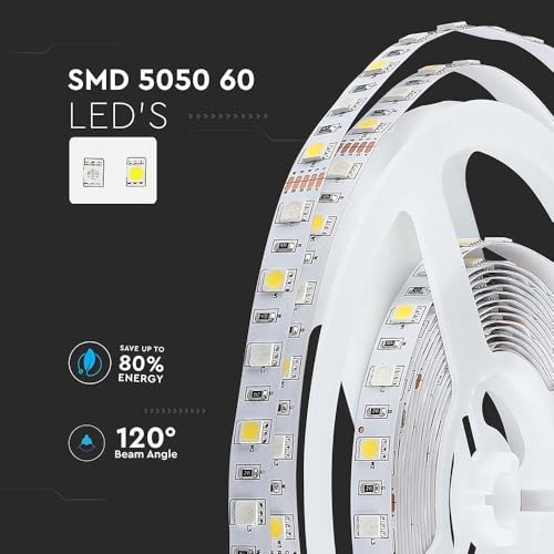 V-TAC Striscia Led da Interno 8W - 5 Metri di Lunghezza - SMD 5050 Alta Luminosità - Colore della Luce RGB - Strisce Led - Striscia LED Adesiva per Casa, Cucina, Camera, Ambienti Interni - 12 Volt