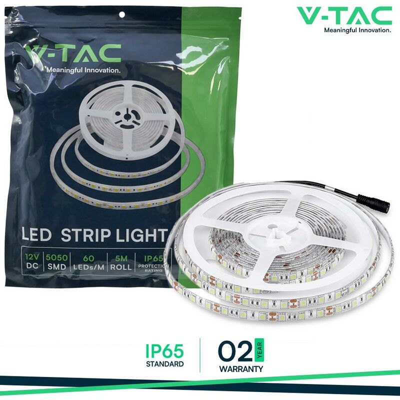 V-Tac VT-5050-60 è una striscia LED flessibile con potenza totale di 55W ( 11 W/m ) e tecnologia LED SMD5050 . Con fascio luminoso di 120° e flusso luminoso di 900 lm/m, questa striscia monocolore ha un rapporto di 81 lm/W . Bobina da 5m e striscia sezionabile ogni 50mm. Applicazione tramite adesivo sul retro e connessione alla rete elettrica tramite jack 2.1 . Adatta anche all'uso esterno grazie al suo grado di protezione IP65 . Questo modello di striscia è disponibile con 3 diverse temperature colore: Luce Bianca Calda 3000K (SKU 212149), Bianca Naturale 4500K (SKU 212150) e Bianca Fredda 6000K (SKU 212148). Note: L'inserzione fa riferimento alla vendita della striscia LED. L'alimentatore ed il controller necessari per il funzionamento, devono essere acquistati a parte