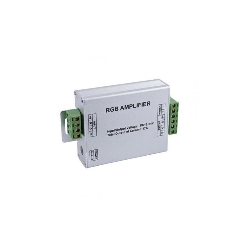 SKU: VT-2407 Amplificatore di segnale V-TAC VT-2407 per strisce a LED RGB da 12/24V. Consente la gestione, con un singolo controller rgb (non incluso), di strisce led più lunghe di 5 metri. Superati i 5 metri, per poter continuare ad utilizzare un solo controller, occorre inserire un amplificatore di segnale, con relativo alimentatore adeguato all'amperaggio della striscia. Questo amplificatore ha un Voltaggio di 12-24V, una tensione di uscita massima di 12A e si connette con la striscia LED tramite morsetti a vite. Per poterlo utilizzare necessita di un alimentatore (non incluso) che può essere connesso all'amplificatore anche tramite Jack 2.1 Plug&Play. SCHEDA TECNICA • Voltaggio: 12/24V (alimentatore non incluso). • Tensione di uscita: 12 A (max.) • Output: 3 canali • Tipo connessione: Morsetti a vite - Jack 2.1 Plug&Play. • Dimensione: 150x25x65mm • Peso: 100g Garanzia 24 mesi