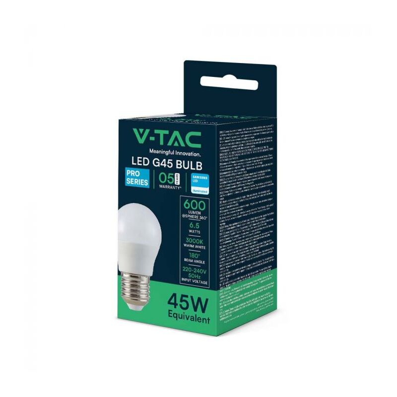 Lampadina LED V-TAC PRO con SKU 21866 e codice famiglia VT-290-N progettata per offrire un'eccellente illuminazione in ambienti domestici o commerciali. 5 ANNI DI GARANZIA. Marca: V-TAC PRO Tipo di lampadina: LED Chip LED: Samsung Attacco: E27 Potenza: 6.5W Flusso Luminoso: 600 lm Colore della Luce: Bianco caldo (3000K) Forma: G45 Questa lampadina LED offre una luce bianca calda e confortevole, ideale per creare un'atmosfera accogliente in vari ambienti. Con una potenza di 6.5W e un flusso luminoso di 600 lm, fornisce un'illuminazione efficace e brillante. Grazie al chip LED Samsung, garantisce prestazioni affidabili e una lunga durata. Con attacco E27, facilmente installabile su diversi tipi di portalampada. La sua forma compatta G45 la rende adatta per l'uso in lampade da tavolo, lampadari, applique e altre applicazioni di illuminazione. SKU: 21866 Codice Famiglia: VT-290-N Marchio: V-TAC Garanzia: 5 anni Classe Efficienza: F Colore della Luce: Bianco caldo (3000K)