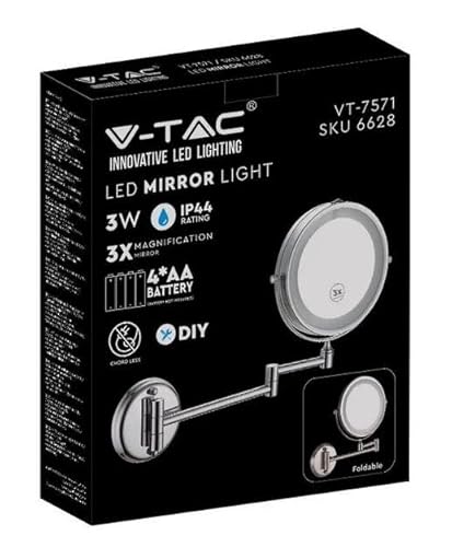 V-TAC VT-7571 Lampada specchio ingrandimento 1x - 3x con luce LED integrata 3W bianco freddo 6400K orientabile fissaggio a muro colore nickel satinato - sku 6628