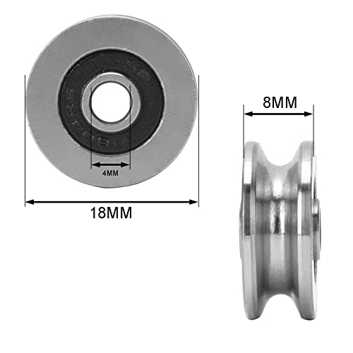 V1804 V-Groove Cuscinetti, 10pcs 18mm * 4mm * 8mm profondo doppia schermatura miniatura cuscinetti a sfera Rail Bearing Guide Puleggia, cuscinetto in acciaio per stampante 3D,motore,skateboard