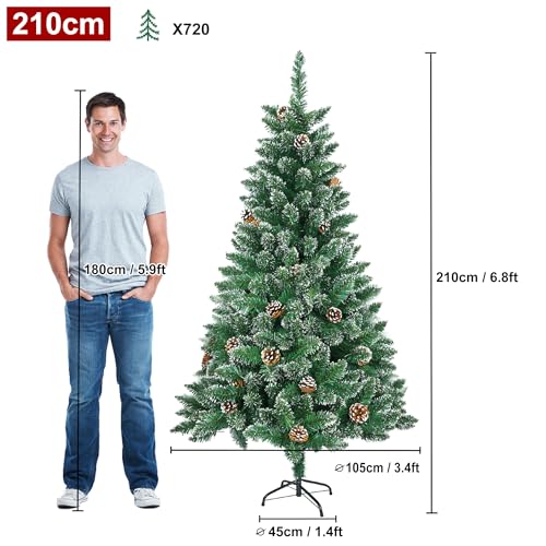 VA-Cerulean - Albero di Natale artificiale, ignifugo, montaggio rapido, con supporto (PVC verde con effetto neve, 210 cm)