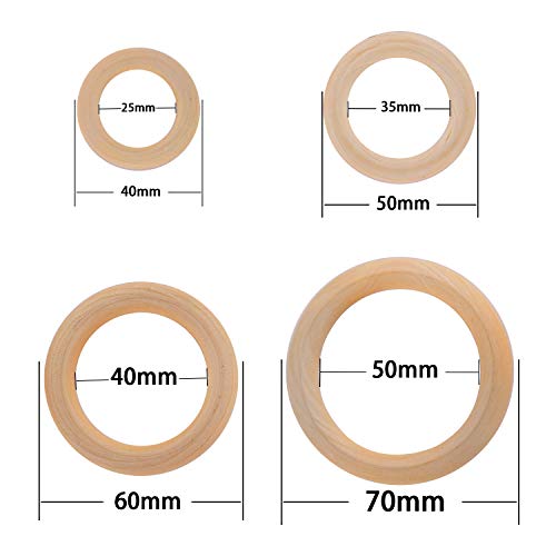 VABNEER 40 Pezzi Anelli Legno Anelli in Legno Naturale Anello di Legno Fai da Te per Decorazioni Fatte a Mano Fai-da-Te, Bracciale Collana Fai-da-Te