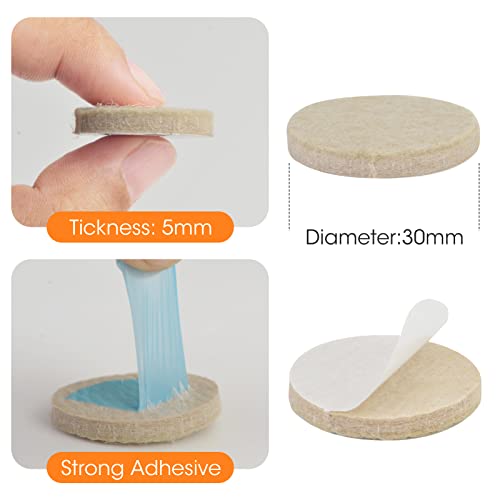VABNEER 90 Pezzi Feltrini Autoadesivi Rotondi, 30mm Feltrini per Sedie con 5mm Spessore,Feltrini Proteggi Mobili e Pavimenti