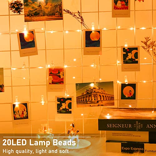 Vacoulery Luci Clip Foto 2M 20LED Luci Foto con 10 Mollette e 5 Chiodi Foto Clip Luce Bianca Calda Luci LED per Decorazione Camere Festa di Matrimonio Compleanno