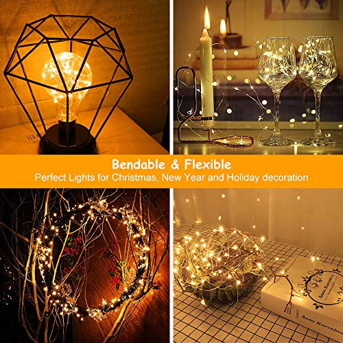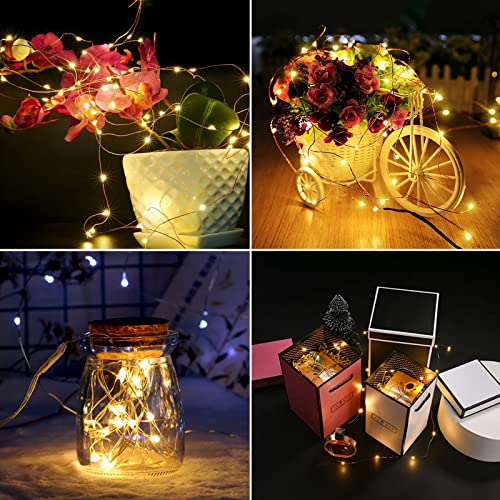 Vacoulery Led Stringa Luci a Batteria, 2M 20Leds Rame filo Ghirlanda Catena Luminose Lucine Fata Luci per Esterni e Interni Decorative Festa Natalizie letto Camera, Bianco Caldo - 10 Pezzi