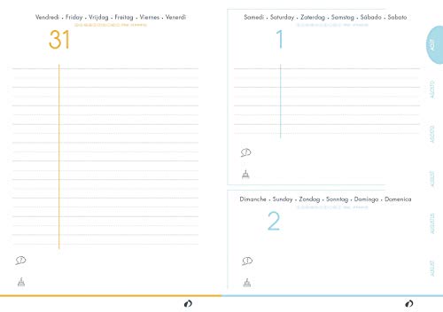 Agenda scolastica giornaliera colorata, con impaginazione di 1 giorno per pagina (tranne per i week-end) e ampia sezione per gli appunti