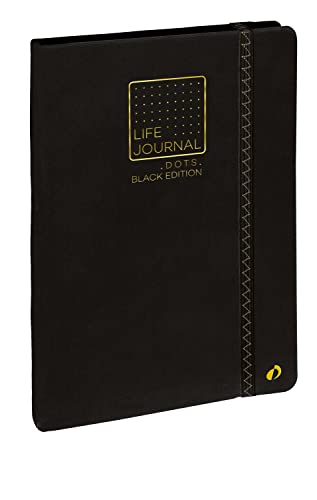 Quo Vadis 2371198Q TACCUINO LIFE JOURNAL BLACK EDITION, Multilingua Colore Nero 224 pagine-Formato 15x21cm con elastico, Carta Nera Riciclata, Copertina in Sintetico, Life Journal