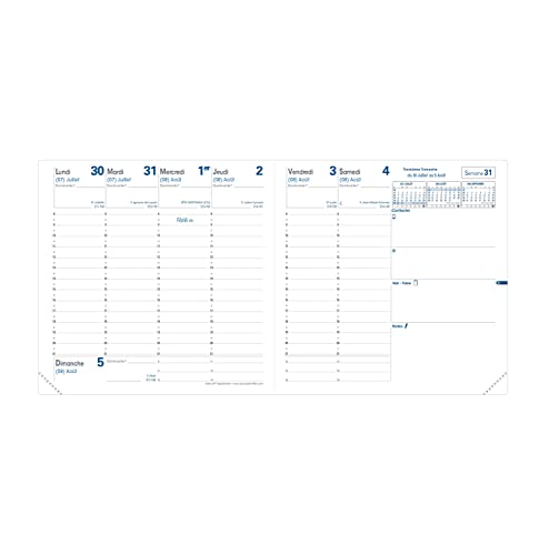 Agenda settimanale con presentazione settimanale su 2 pagine per offrire una visione a colpo d'occhio