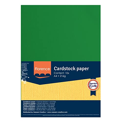 Vaessen Creative Florence-Cartoncino Testurizzato, 216 Grammi, Formato A4, 10 Fogli, per Scrapbooking, creazione di Biglietti, fustellatura e Altri lavori con la Carta, Verde